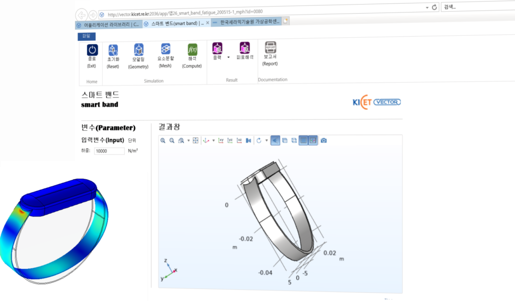 – 탈착시 발생하는 밴드 부위의 피로특성을 예측하기 위한 시뮬레이션 모델– 밴드에 가해지는 반복하중에 따른 구조해석 및 밴드의 수명 예측 정보 ∙ 모듈 Fatigue Module ∙ 해석 예상 시간 30 sec