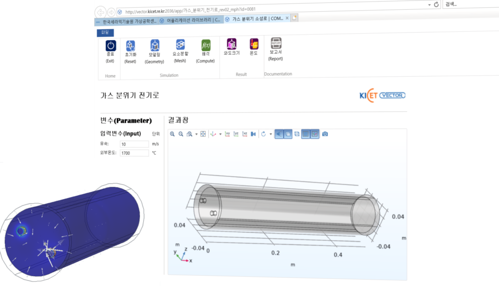 전기 에너지를 이용하여 로를 가열하고, 그 열로 대상을 가열하는 전기로 해석 정보 ∙ 모듈 CFD Module ∙ 해석 예상 시간 50 min ∙ 제작자 한국세라믹기술원 가상공학센터