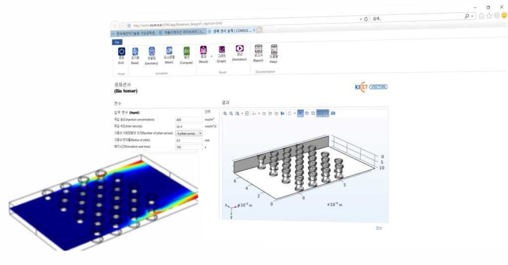 홈Vector App유동생체 센서 설계 유동 화학생체 센서 설계 – 수용액에서 항원의 흡착을 위한 정렬된 미세기둥들을 포함하는 바이오센서의 셀을 해석– 표면 범위에서 신호 비례하는 화학발광을 통해 사용자가 센서의 설계 매개변수(기둥의 직경, 공간의 크기, 유입 속도)를 변경하여 탐지 정보 ∙ 모듈Batteries & Fuel Cells Module∙ 해석 예상 시간9 min∙ 제작자COMSOL 앱 사용 신청하기 사용방법 다운로드